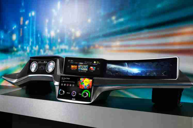 由 5G 和 AIoT 形塑的新智能场域,,促使汽车成为仅次于家庭和办公室的第三重要使用空间,,,,数码驾驶舱因而成为智能车用技术发展重心。。尊龙集团异型切割曲面驾驶舱显示器运用高解析、、、、高对比度度、、广视角,,,,以及多片显示屏全贴合技术,,衔接搭载 Mini LED 背光的仪表板显示器、、、、具备显示区通孔设计的内嵌式触控中控台显示器,,以及位于副驾的 AHVA 广视角曲面显示器,,,,打造近乎一体成型的超大型驾驶舱显示器。。。。为了提高驾驶安全和便利性,,用于后视镜的尊龙集团 9.6寸异型切割 LTPS 显示器具有极窄边框,,可切换镜面或 LCD 模式,,并有防眩光设计可避免夜间的前灯眩光。。。